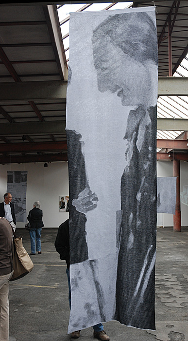Wie stricke ich ein Selbst? Die Antwort hing frei im Raum einer alten Industriehalle als großes lichtdurchlässiges Strickbild, mit dem Titel Proberaum Selbst. Marion und die Marionetten. Von zwei Seiten zu betrachten, spiegelbildlich, einmal positiv und einmal negativ, seitenverkehrt. 24 x Selbst ist die Strickerei aus dem Jahr 2008 betitelt. 6 x Selbst ging voraus. Diese Arbeit habe ich gesehen, bevor ich die Malerin zum ersten Mal treffen sollte. Sie war schon vor ihrem Erscheinen da.